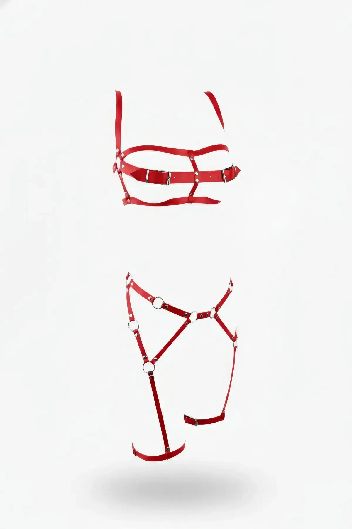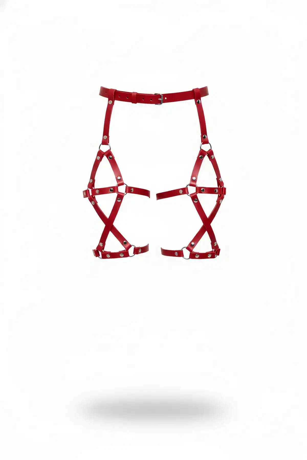 Red Harness Set with Neck Strap and Garter Belt, Metal Details – SH488