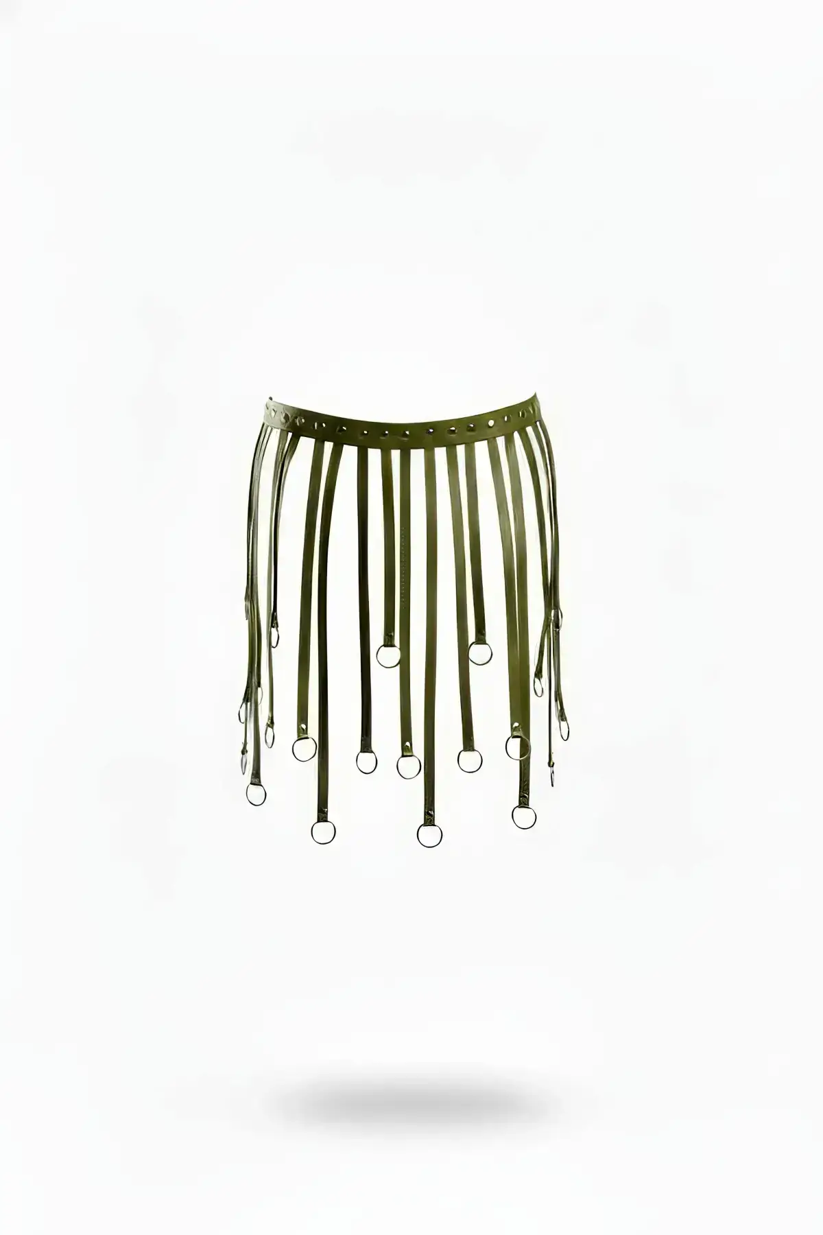 Khaki Skirt, Faux Leather Skirt with Multiple Straps and Ring Closure – SH579