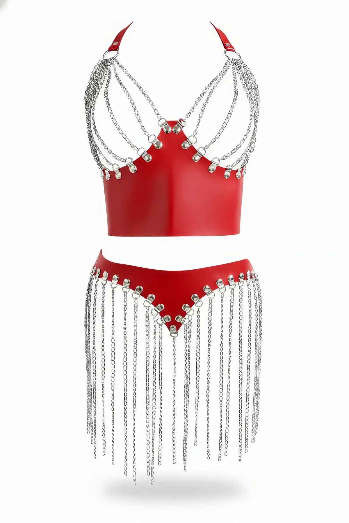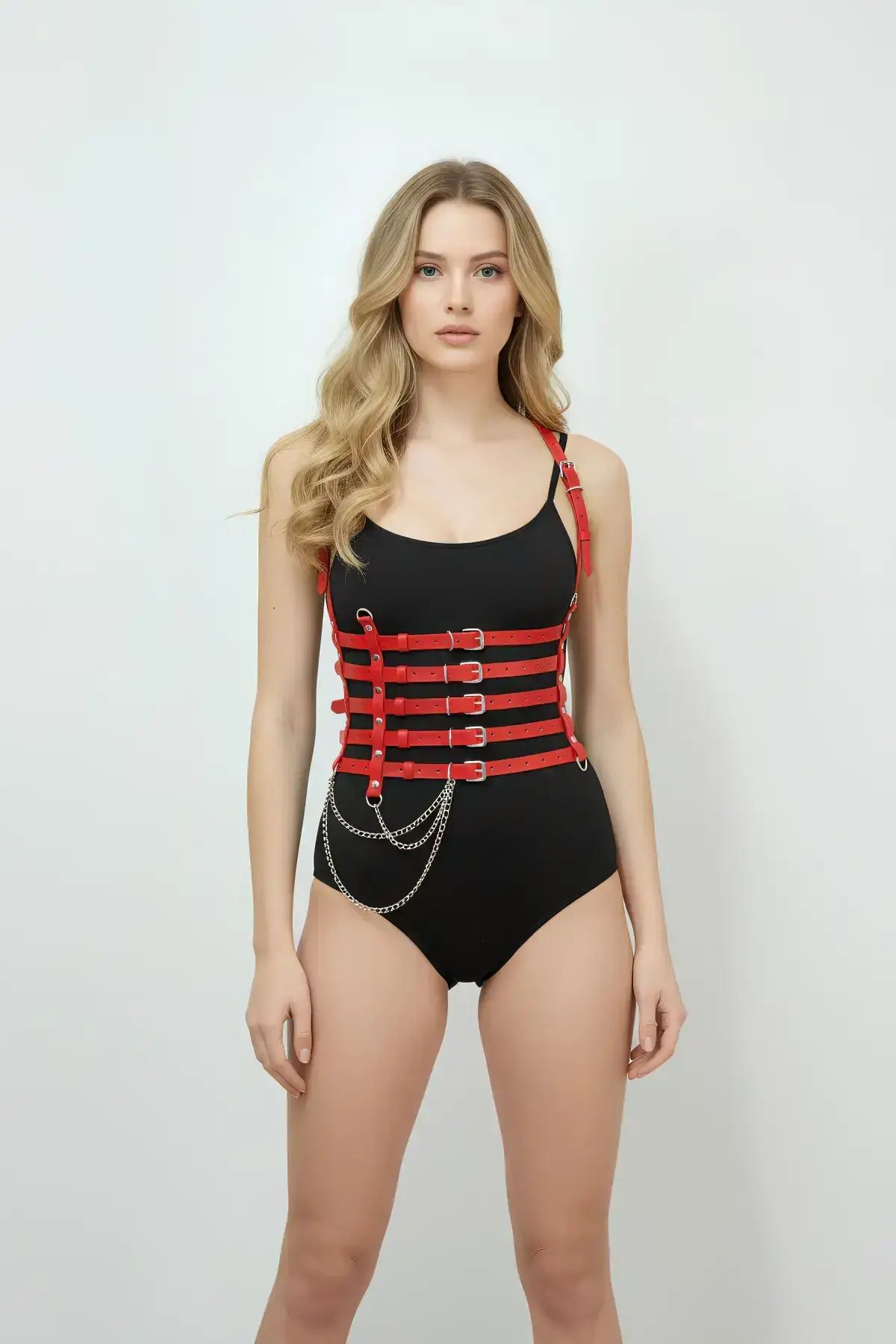 Red Harness Set Faux Leather Body Belt with Chain Detail – SH1219