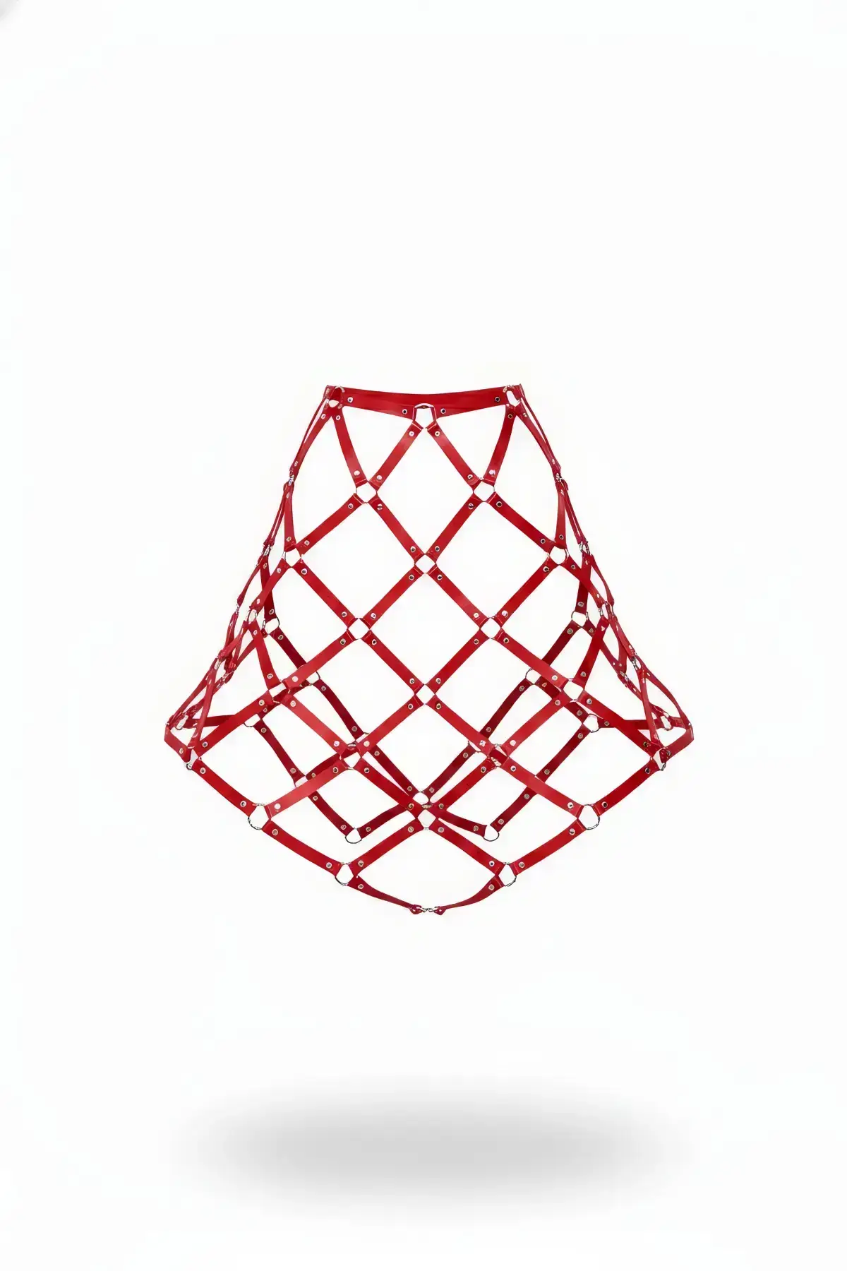 Red Skirt with Leather Cage Structure and Ring Detail – SH982