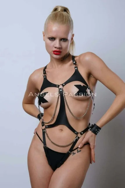 12,9 $Fantasy Body Clamp, Open Mesh Leather Bondage Harness Set – SH1062