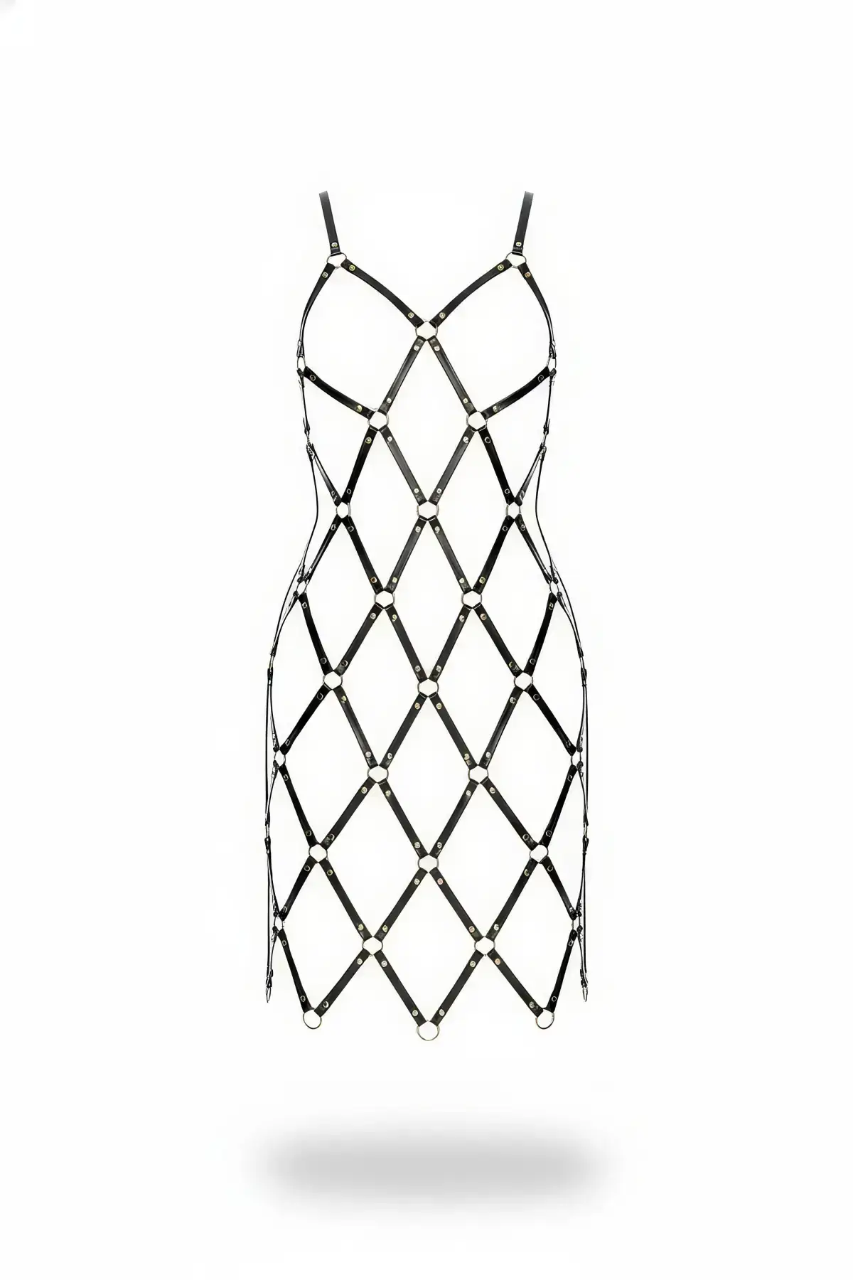 Black Leather Cage Pattern Studded Mini Skirt – SH982