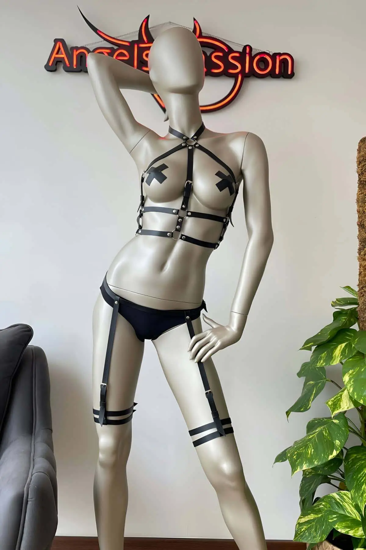 Whether you are layering this piece under a skirt for a subtle edge or pairing it with lingerie for a dramatic look, the multi-strap construction commands attention. The elaborate network of straps creates a distinct, bondage-inspired silhouette that is both empowering and deeply seductive. Pair this stunning set with a matching Body Harness or browse our full selection of Women’s Harness accessories to complete your ultimate outfit.
