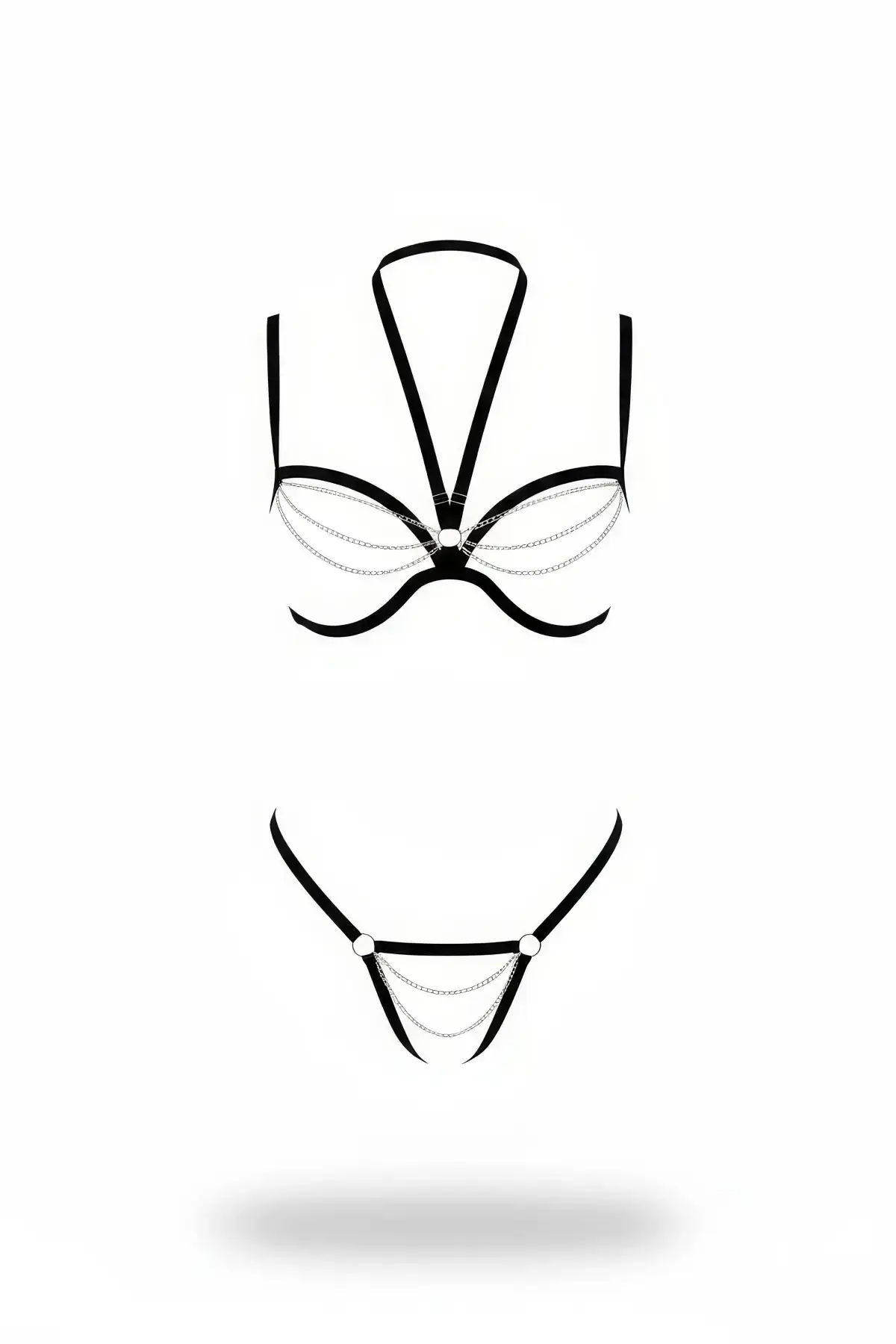 Black Harness Set with Chain Detail Body Bralette – SH1204