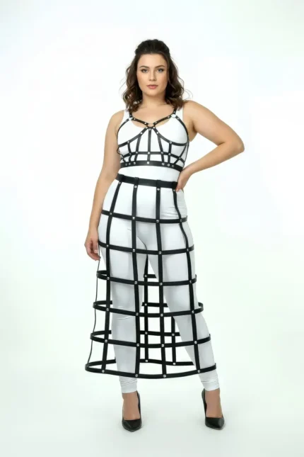 54,9 $Plus Size Black Leather Skirt with Cage Detail and Long Accessory – SH1013
