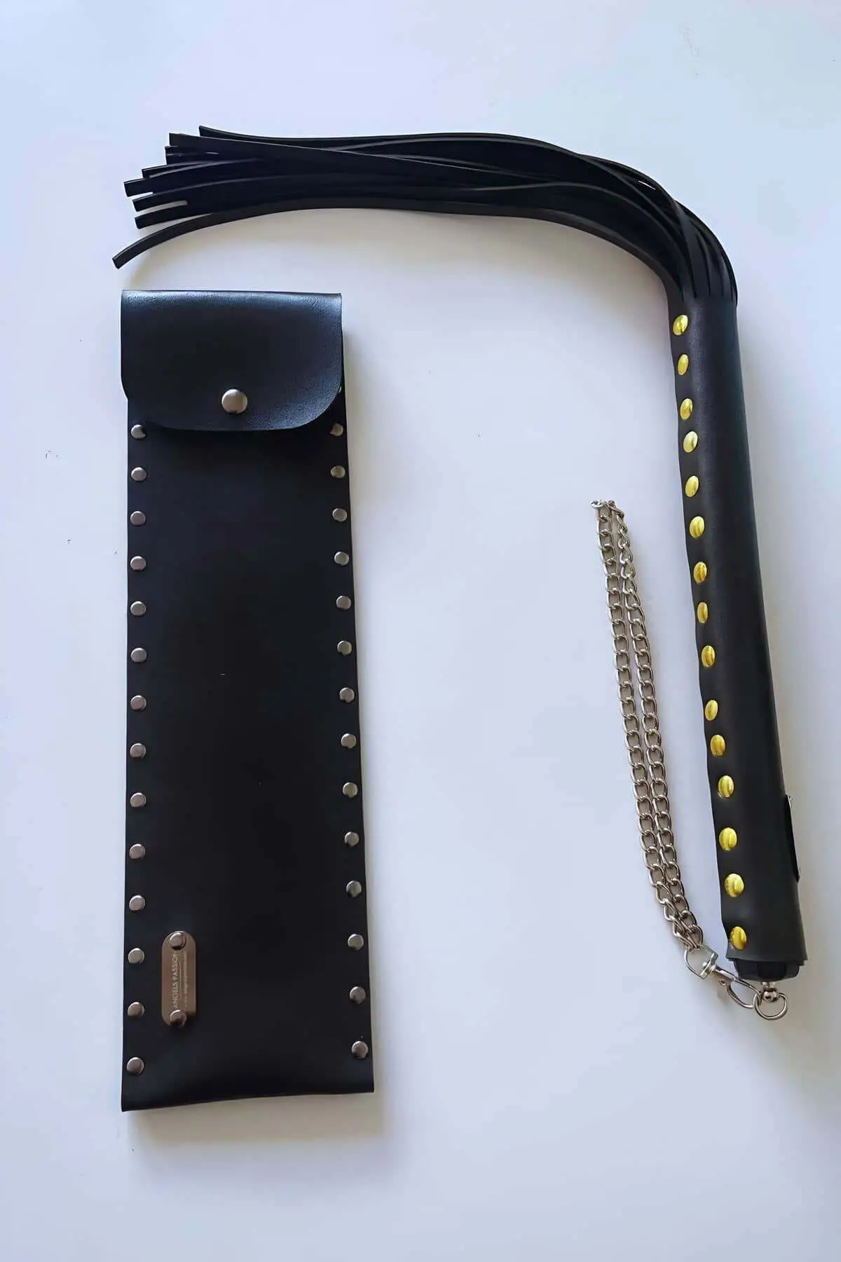 Black Whip with Leather Case, Stylish Leather Whip, Sexy Accessory – SH1287