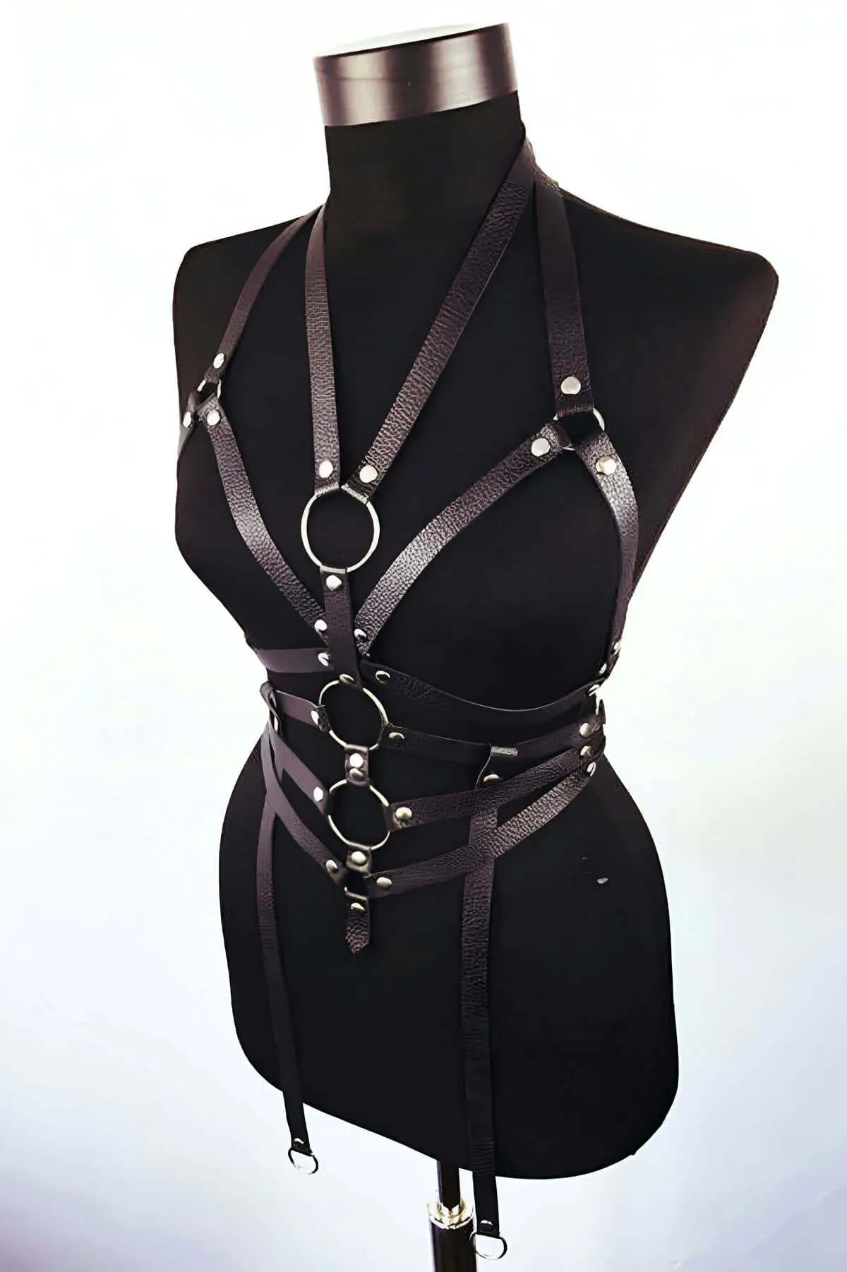 Open Mesh Fantasy Leather Body Harness, Leather Bodysuit – SH1216