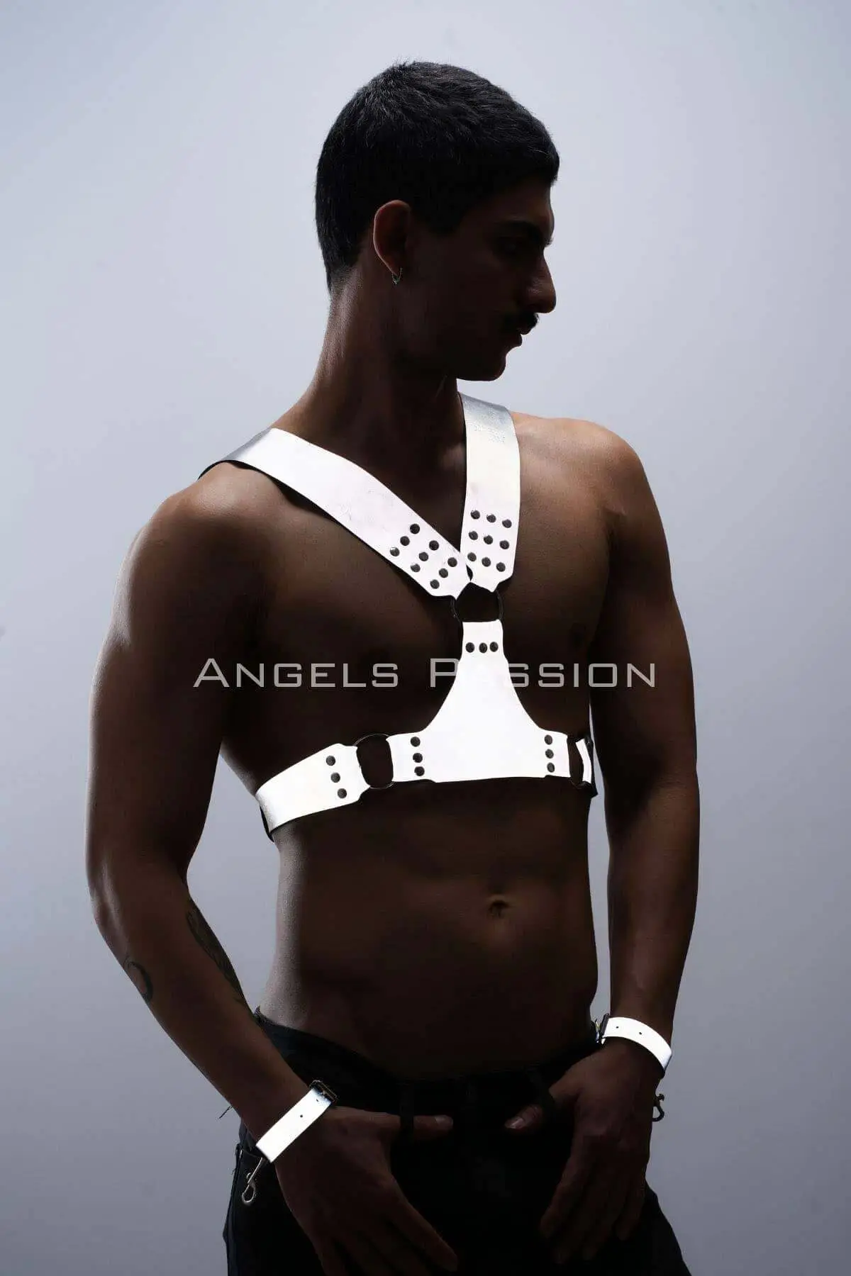 This exclusive Men’s Harness Set features cutting-edge reflective webbing that catches and amplifies light, creating a stunning, ‘glow-in-the-dark’ effect that is truly mesmerizing. Expertly crafted to frame the chest and shoulders, the design delivers instant structure and definition, celebrating the masculine physique. The complete set includes the iconic chest harness and matching cuff/armbands, ensuring your powerful aesthetic is cohesive from every angle. This piece is built for commanding presence and enduring style, night after night.