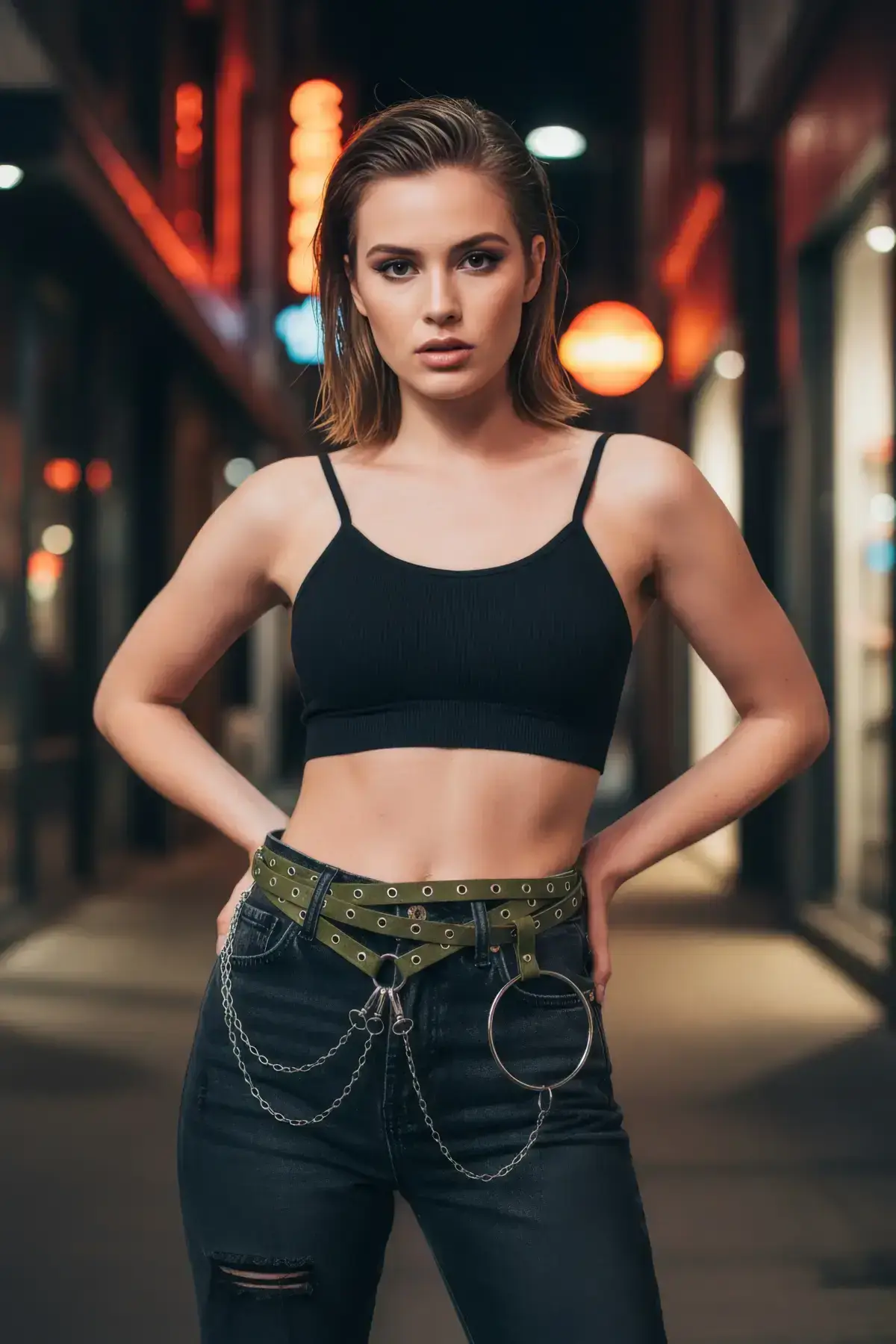 Elevate your street style with this distinct khaki women’s belt. The SH621 model merges a utilitarian aesthetic with a captivating chain detail, making it the essential accessory for completing any alternative or grunge-inspired outfit. Crafted for comfort and designed to turn heads, this piece is the perfect blend of fashion-forward edge and practical wearability.