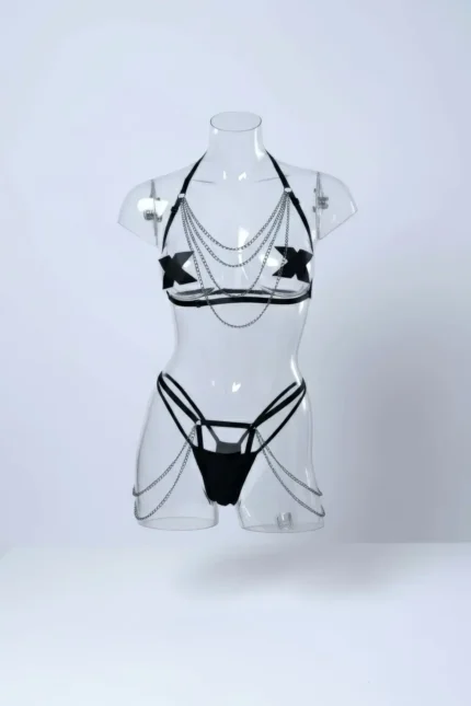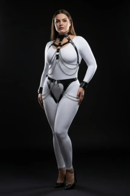 The allure of this faux leather lingerie set lies in its perfect marriage of edgy style and comfortable wear. Designed with numerous adjustable straps and secure buckle closures on both the collar and the thigh bands, this piece ensures a bespoke fit for various body types. The material’s high-shine texture catches the light, delivering a powerful visual impact that defines modern fetish wear. Pair this with a minimalist outfit or layer it over your favorite lingerie for an instant transformation. Explore more structured pieces in our Body Harness collection.
