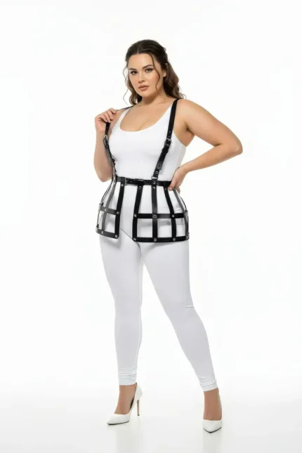 Plus Size Black Leather Belt Detail Harness Skirt Accessory – SH899
