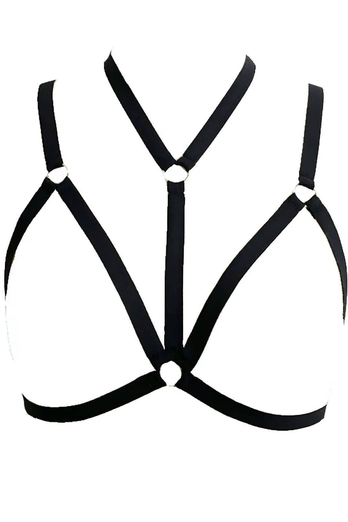 Introducing the essential White Harness, a stunning lingerie accessory designed to redefine your silhouette. This intricate piece features thin, elastic straps creating a striking geometric pattern across the chest and torso. The pure white finish, as seen in the image, offers a delicate contrast against skin or dark undergarments, making it a versatile fashion statement. Constructed with small, silver-tone O-rings and adjusters, this chest harness is engineered for both aesthetic appeal and a perfectly secure, custom fit.