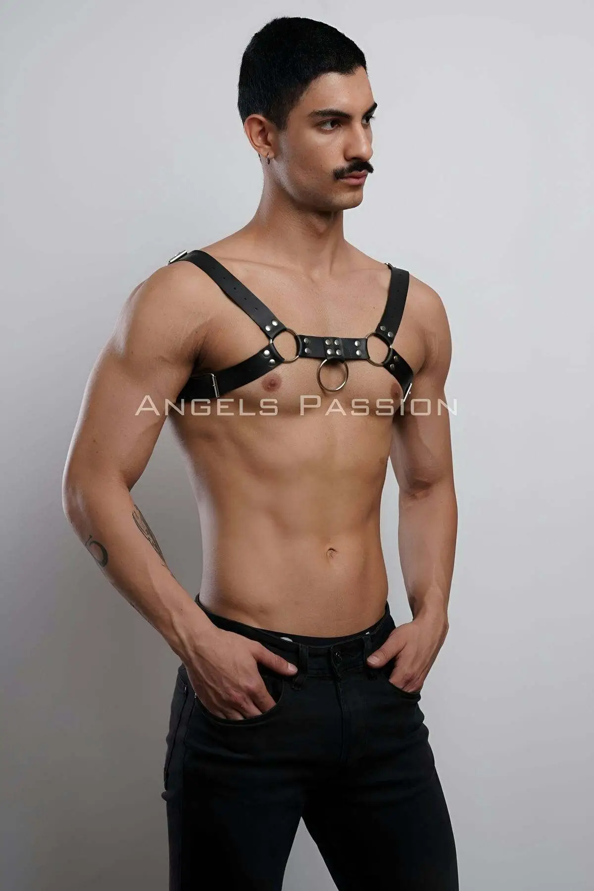 Step into a world of primal power with this men’s fantasy apparel leather chest harness. Designed to capture the aesthetic of warrior armor and modern fetish style, this piece is the ultimate statement for raves, cosplay, or the bedroom. Its strong lines emphasize the male physique, ensuring all eyes are fixed on you.