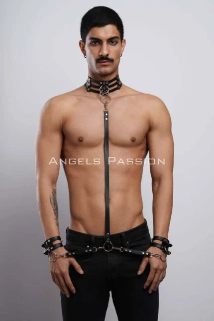 Men’s One-Shoulder Harness, Leather Leg Accessory, Fancy Men’s Outerwear – SHM177
