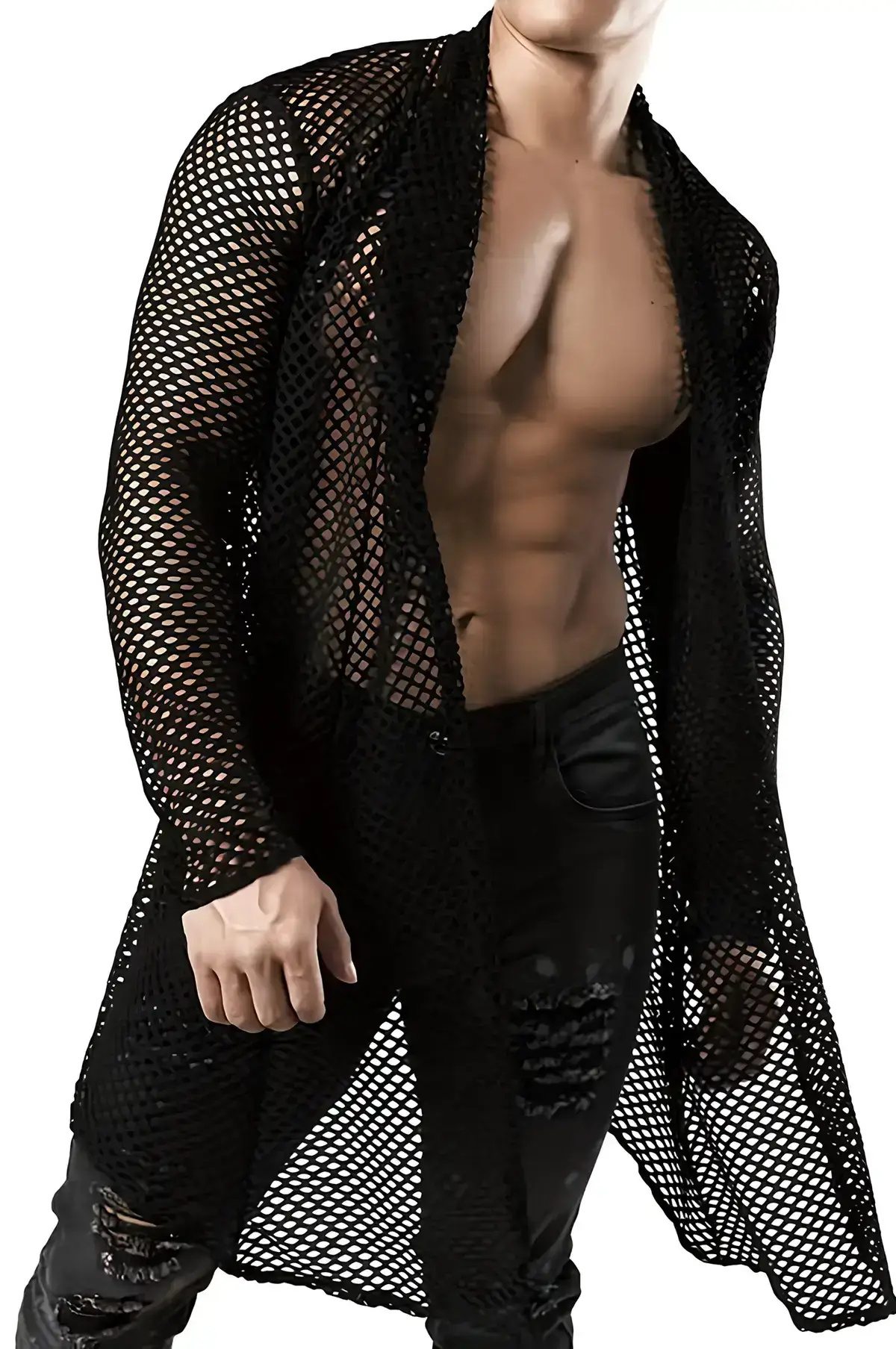 Step out and dominate the night in this men’s long mesh kimono shirt. This transparent clubwear piece redefines edgy style, offering a dramatic, flowing silhouette that’s perfect for festivals, parties, or any event where making an unforgettable statement is the goal. Its light, airy mesh construction ensures you stay cool while heating up the atmosphere. Itβs the ultimate overlay to elevate your core outfit.