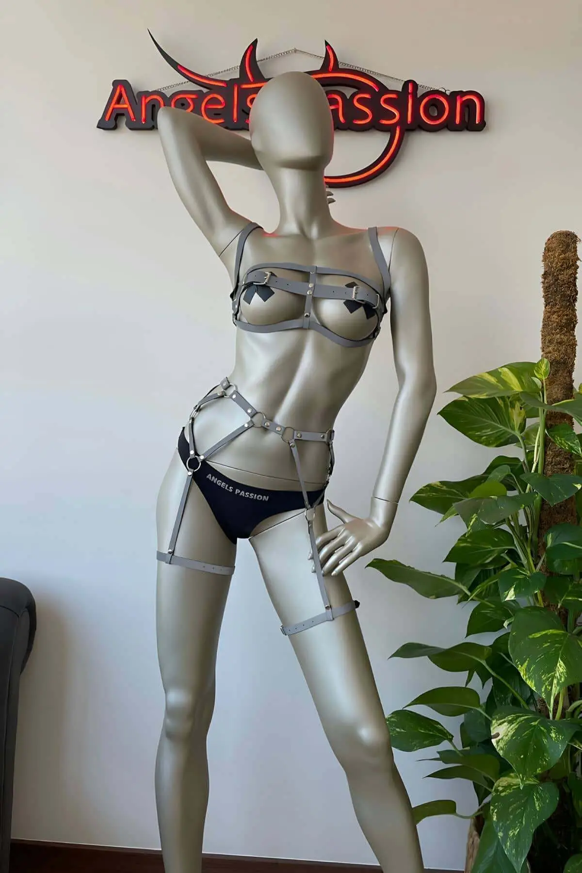 The construction of this White Reflective Garter Bra Set demonstrates premium expertise. Built from a durable yet comfortable blend, the pieces feature high-quality hardware and fully Adjustable Straps on the bra and garter belt, ensuring a precise and secure fit for diverse body shapes. This unique combination of soft, breathable mesh and innovative reflective material elevates this from simple lingerie to a high-fashion piece of Reflective Lingerie. The wide, intricate banding forms a stunning silhouette, making this the epitome of Statement Strapping for your collection.