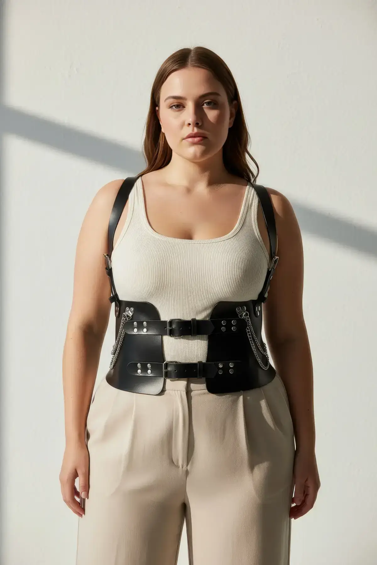 Ready to define your silhouette with a serious statement? This plus-size black corset-style belt is the ultimate accessory for adding instant structure and drama to any outfit. The wide, comfortable design is specifically tailored to embrace and enhance your curves, providing that coveted hourglass shape without restriction.