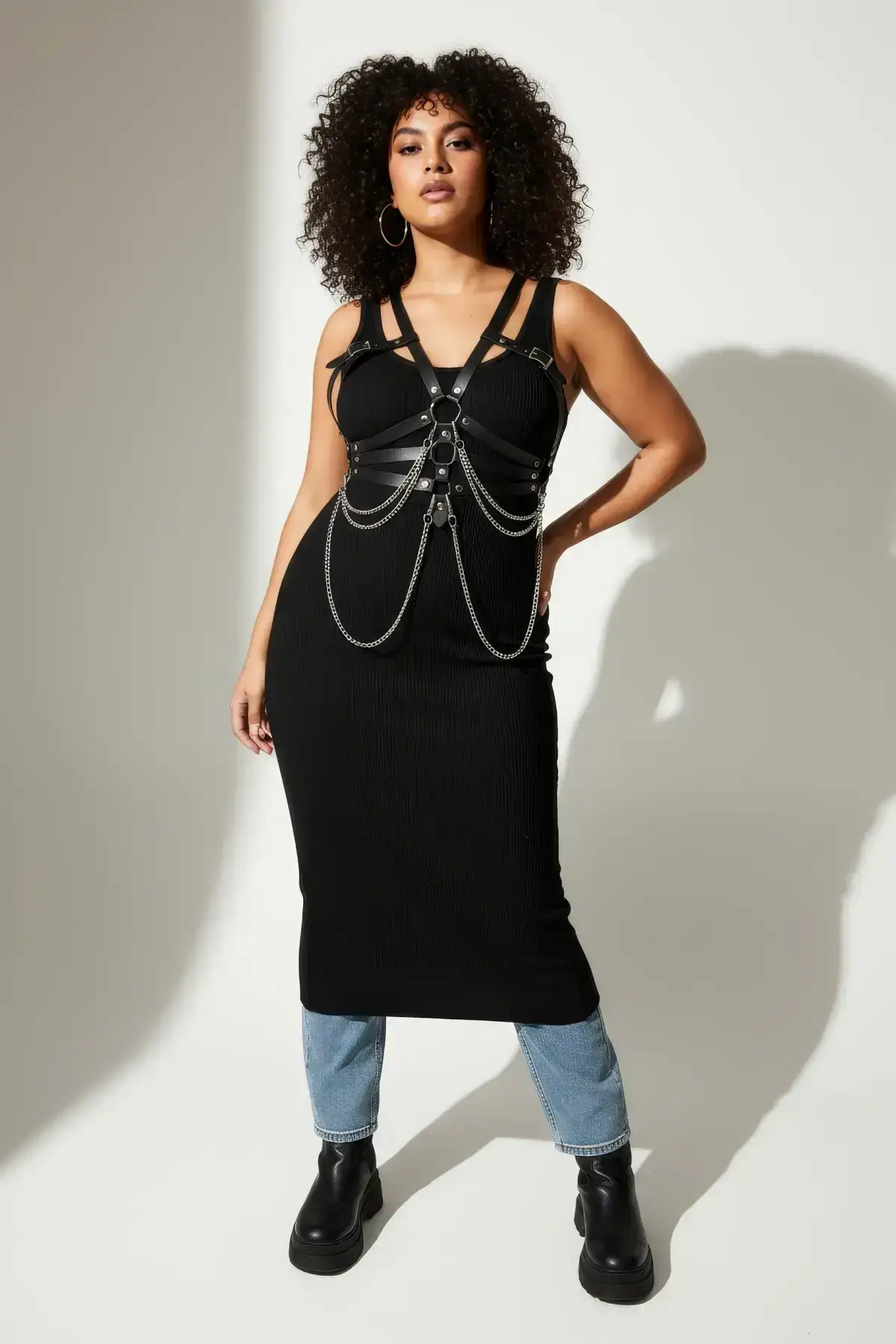 This isn’t just a belt; it’s a statement piece. The captivating chain detailing drapes elegantly across your front, catching the light and adding an undeniable rock-and-roll vibe to your ensemble. Pair it with a simple dress or over a crisp shirt to instantly elevate your look. For an even more complete accessory style, consider pairing it with a complementary Body Harness to extend the look from your waistline upwards.