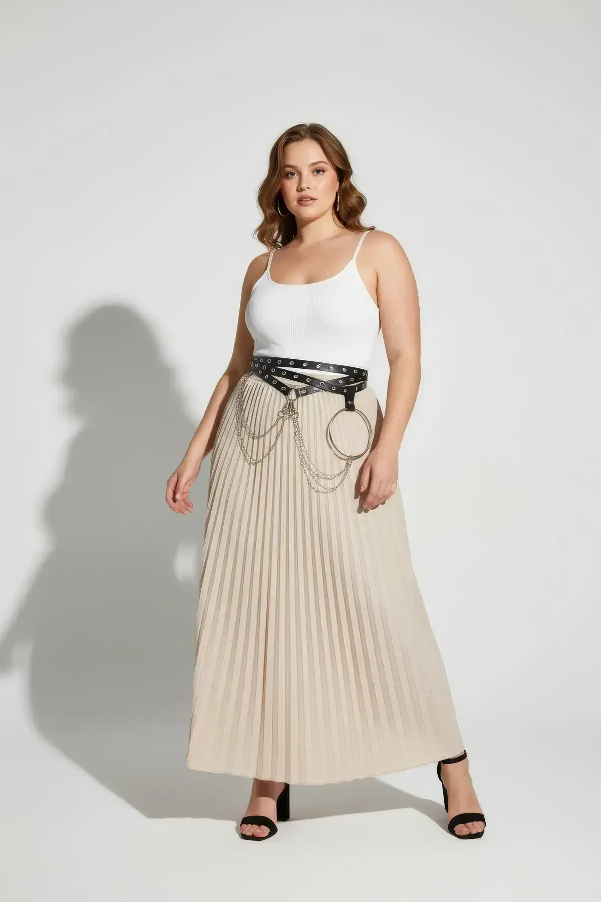 This isn’t just a belt; it’s an attitude. Step into the spotlight with our plus size black belt, an essential piece for anyone embracing an edgy aesthetic. It perfectly merges utility with high-impact fashion, making a striking statement whether you are at a festival or just adding flair to your daily wear. The intricate multi-layer chain and stud detail ensures all eyes are on you.