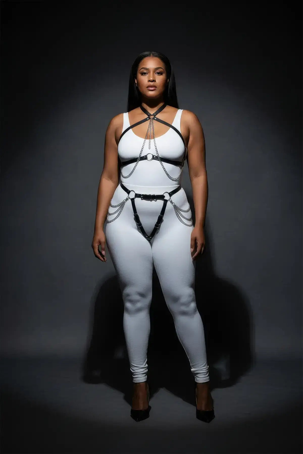 Every detail of this Chest Harness demonstrates superior craftsmanship. We prioritize an inclusive fit, ensuring this Plus Size Harness Set offers both comfort and dynamic appeal. The faux leather material provides a luxurious feel while the robust silver-tone hardware guarantees durability. The designβs multiple buckles and easy-to-use fasteners allow the wearer to customize the fit, highlighting your natural shape. This piece perfectly merges a high-fashion aesthetic with wearability, making it an essential addition to any curated wardrobe looking for a powerful, seductive edge.
