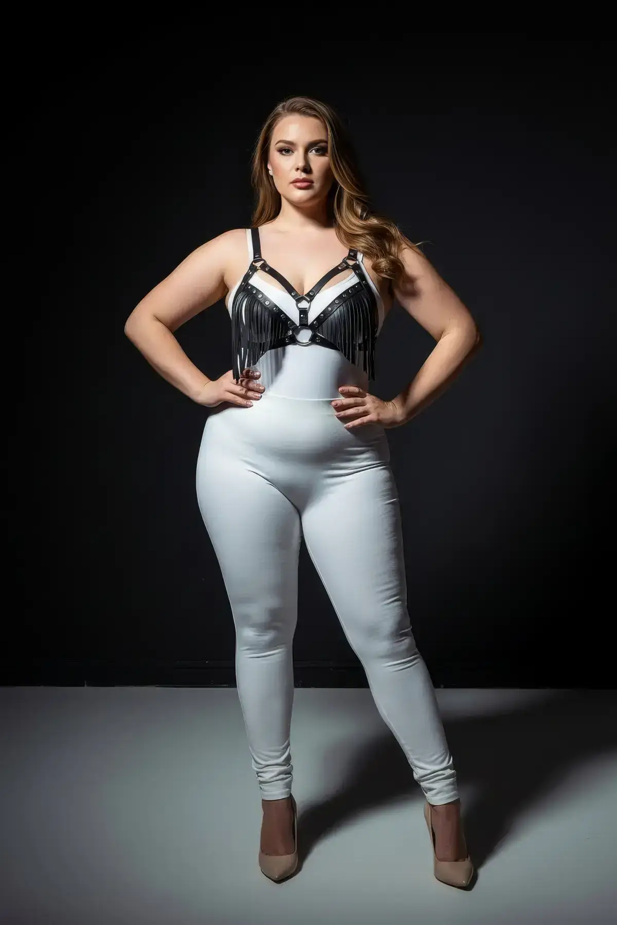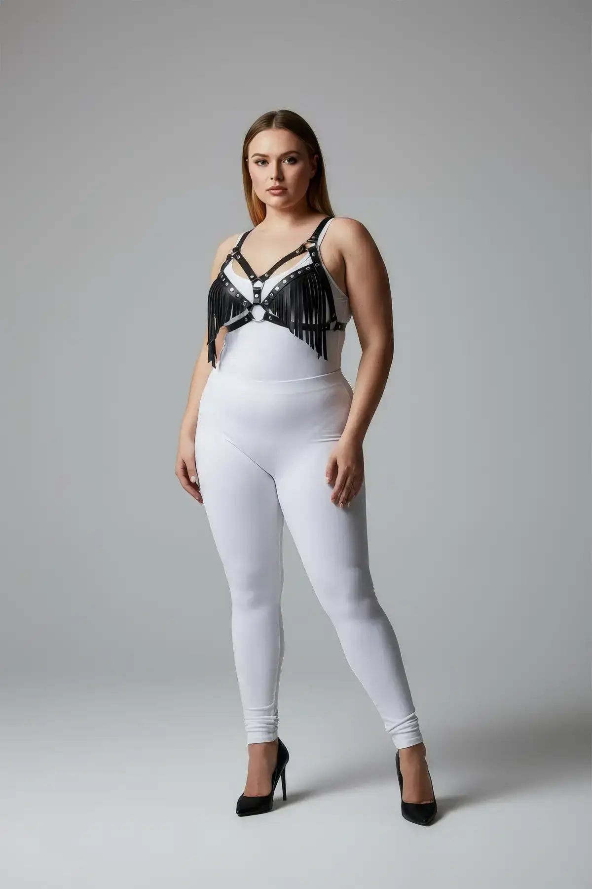 Plus Size Black Women’s Harness Set with Tassel Detail Leather Bra Accessory – SH418