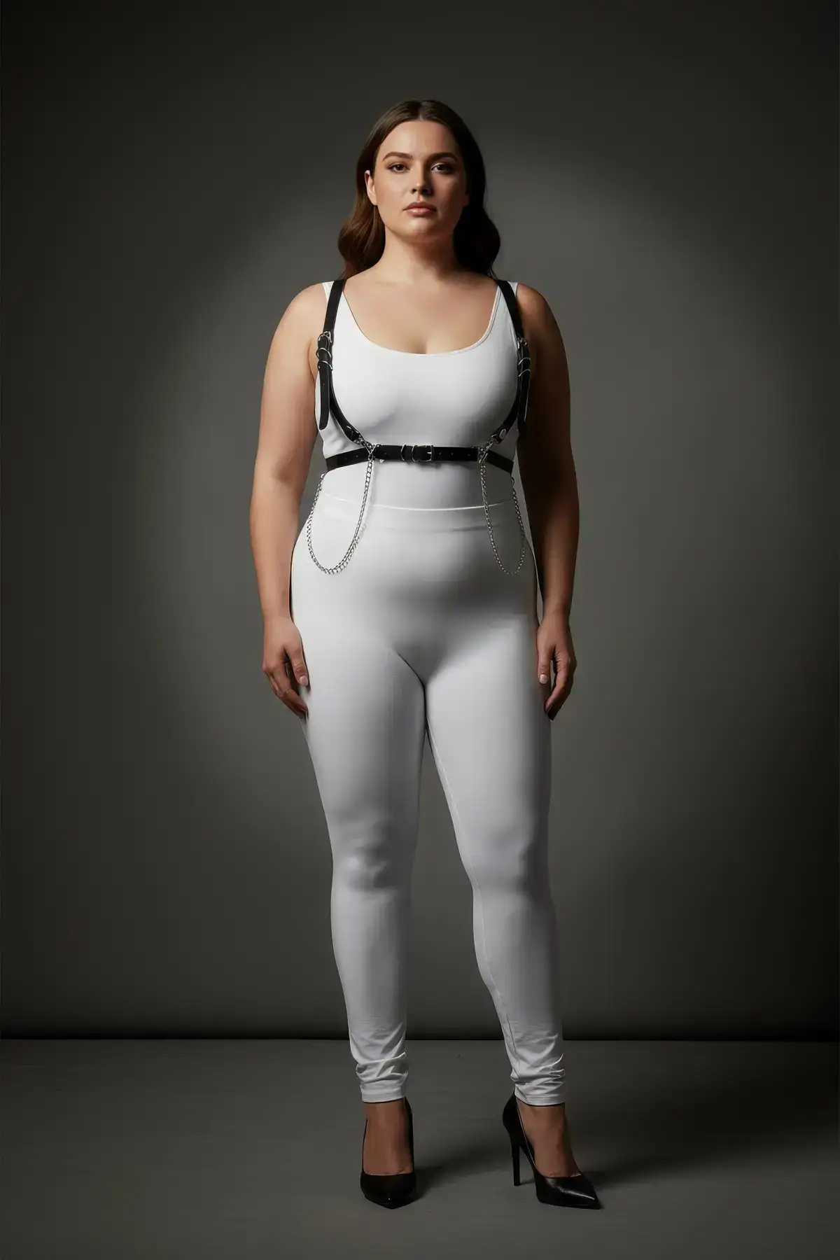 Plus Size Black Women’s Leather Harness Set with Chain Detail – Stylish Accessory – SH1176