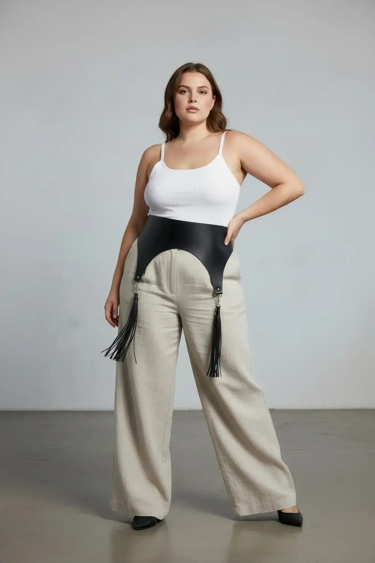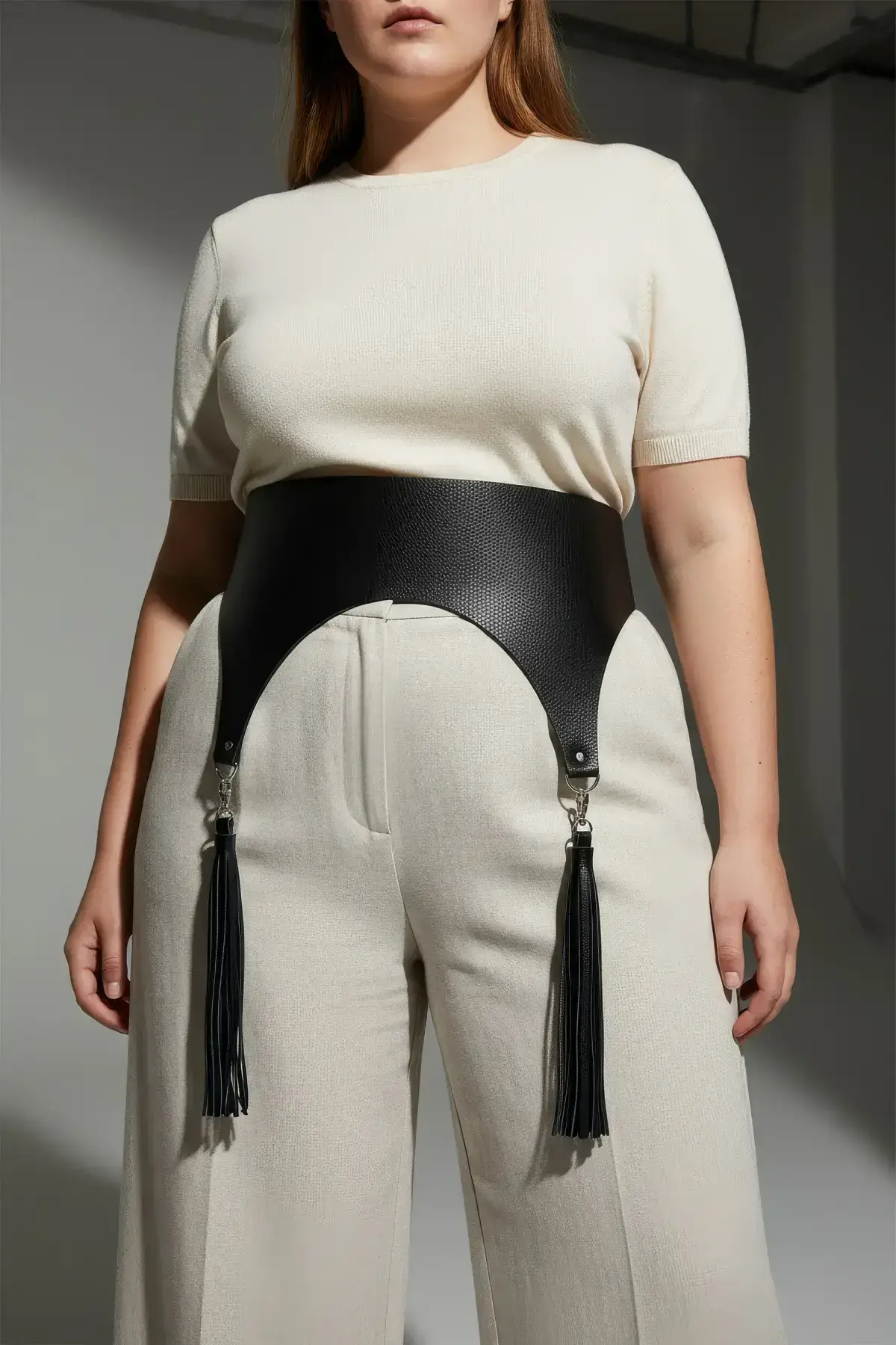 Define your curves and command attention with this striking plus-size corset-style belt. Crafted from soft faux leather, this wide waist cincher features an adjustable design to ensure a comfortable and secure fit for every figure. The dramatic, flowing tassel detail adds movement and an irresistible gothic flair, transforming any outfit into a show-stopping look instantly. Forget basic accessoriesβ€”this piece is a true fashion statement that blends the structural support of a corset with the drama of a flowing tail.