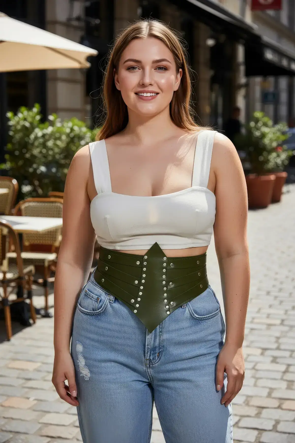 Plus Size Khaki Women’s Corset Belt, Thick Waist Accessory with Stud Detail – SH905