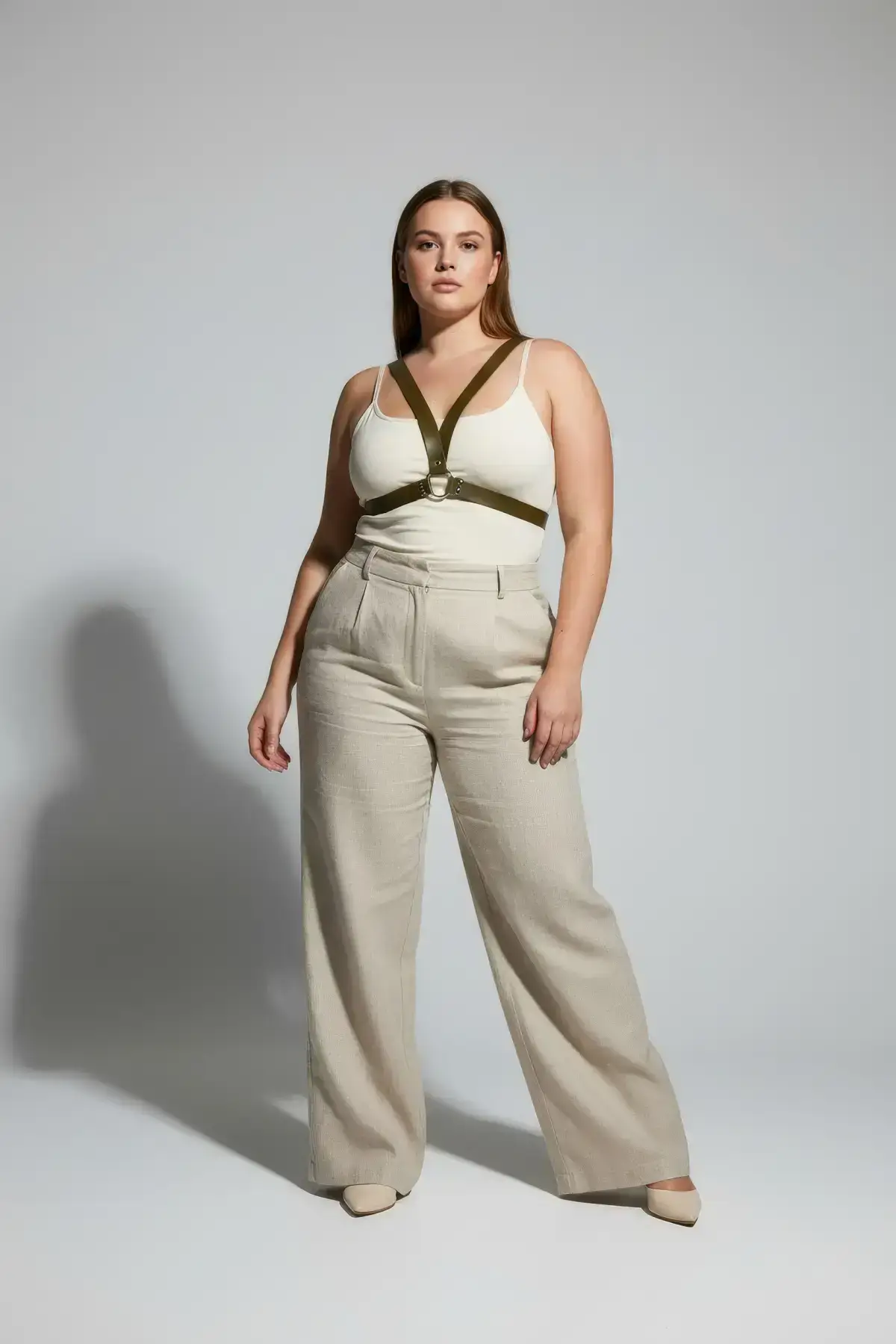 Plus Size Khaki Women’s Leather Belt Harness with Ring Detail Body Accessory – SH633