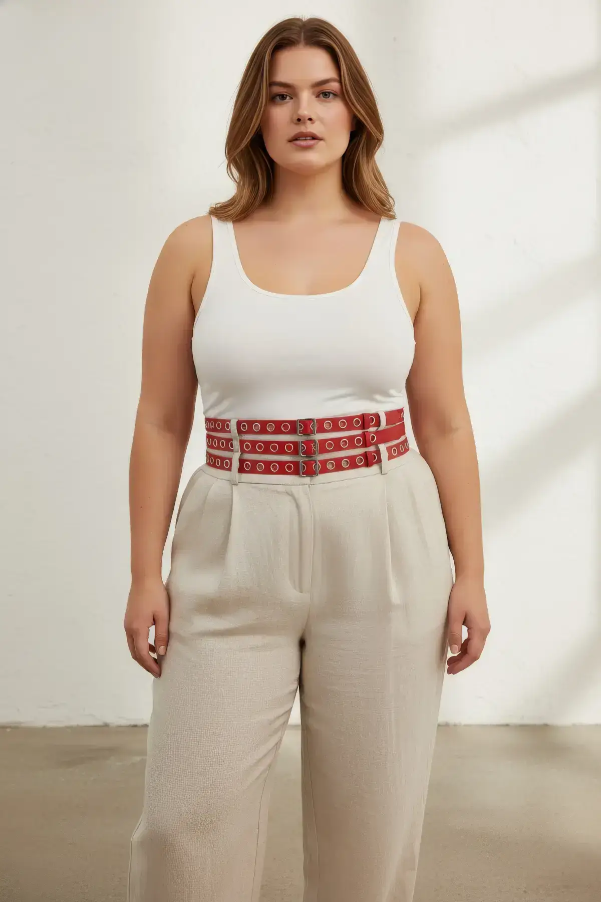 Turn heads and ignite your wardrobe with this striking plus size red waist belt. Crafted from thick, premium faux leather, this accessory is designed to celebrate every curve, offering a bold splash of color and an unparalleled cinched silhouette. Move beyond the basic waistline and let this accessory redefine your look, whether you’re layering over a dress or elevating a simple bodysuit.