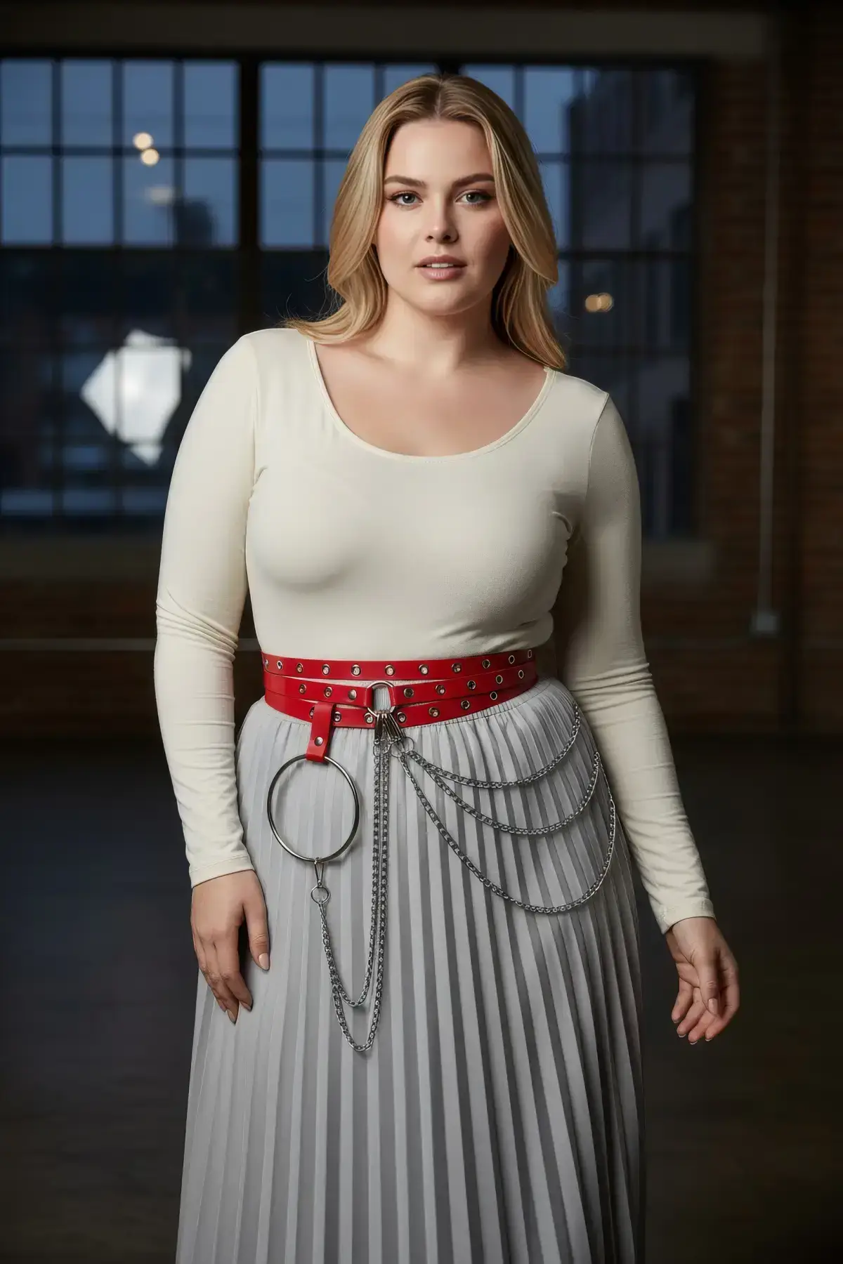Ditch the mundane and embrace a bold new silhouette with this stunning plus size red belt. Crafted from high-quality, leather-look vegan material, this statement accessory is designed to highlight your curves and inject instant attitude into any outfit. The vibrant red hue demands attention, while the adjustable fit ensures you feel confident and secure from dusk till dawn.