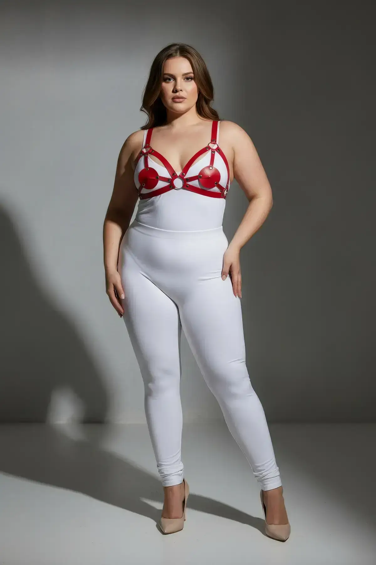 Unveil your bold side with this striking Plus Size Red Women’s Harness Set. The image showcases the setβs vivid, saturated red color and the generous width of the elastic straps, engineered to provide a comfortable and supportive curvy fit. This fantasy accessory features robust silver-tone O-ring hardware, acting as key connection points for the intricate elastic caging design that elegantly frames the bust, torso, and waist. Designed specifically for a fuller figure, this set offers a powerful, confident look that is both stylish and sensual, making it the perfect foundation for any powerful ensemble.