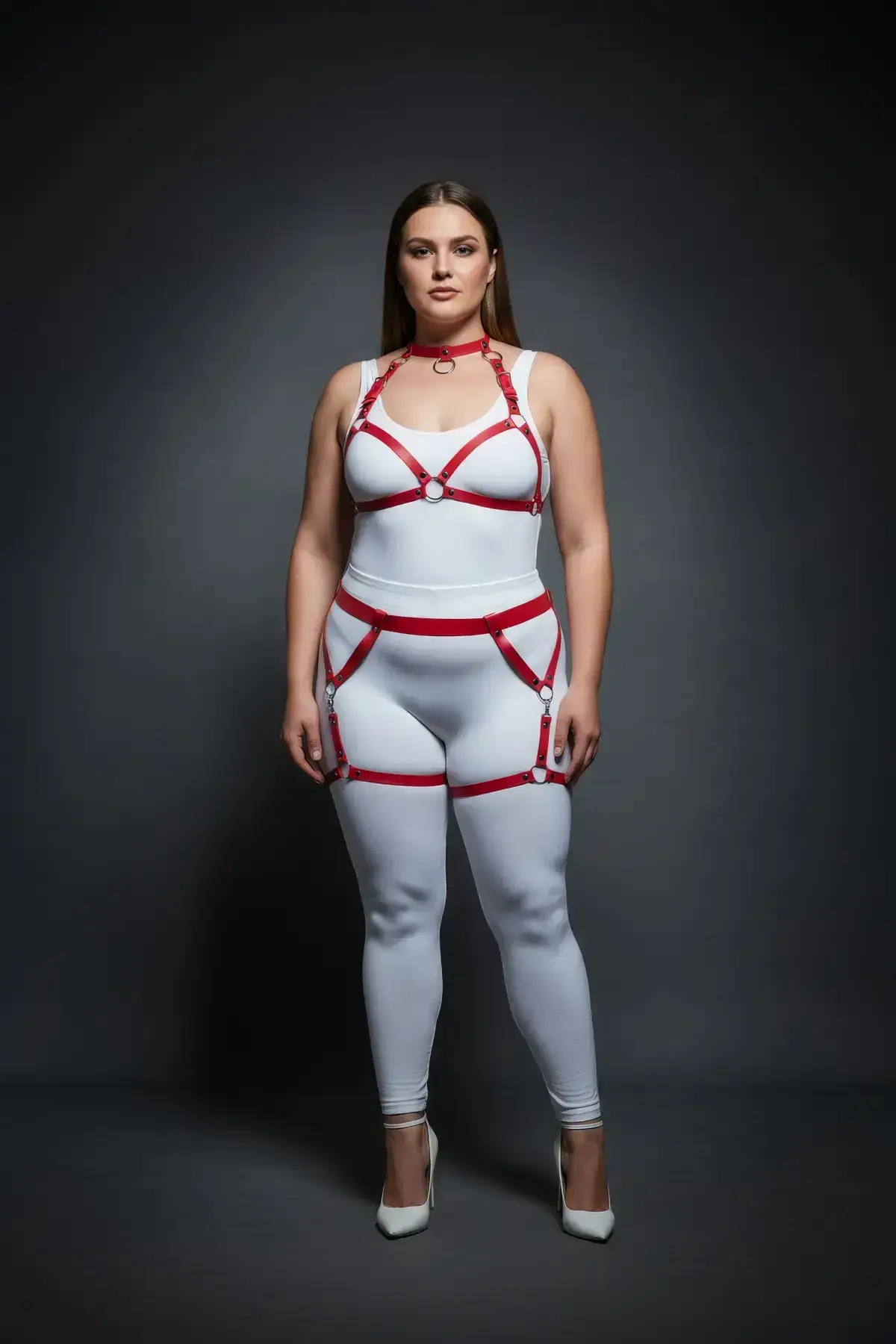 The craftsmanship of this **Plus Size Red Women’s Leather Harness Set** prioritizes fit and longevity. Designed specifically for the plus size customer, it incorporates numerous heavy-duty, **Adjustable Straps** and robust buckles. This ensures a custom fit that flatters your unique body shape while maintaining the integrity of the bold **Geometric Design**. The material provides a comfortable yet structured feel, making it a superior Body Harness option for extended wear. The use of durable **Silver Hardware** not only adds to the aesthetic but guarantees a secure, high-quality structure.
