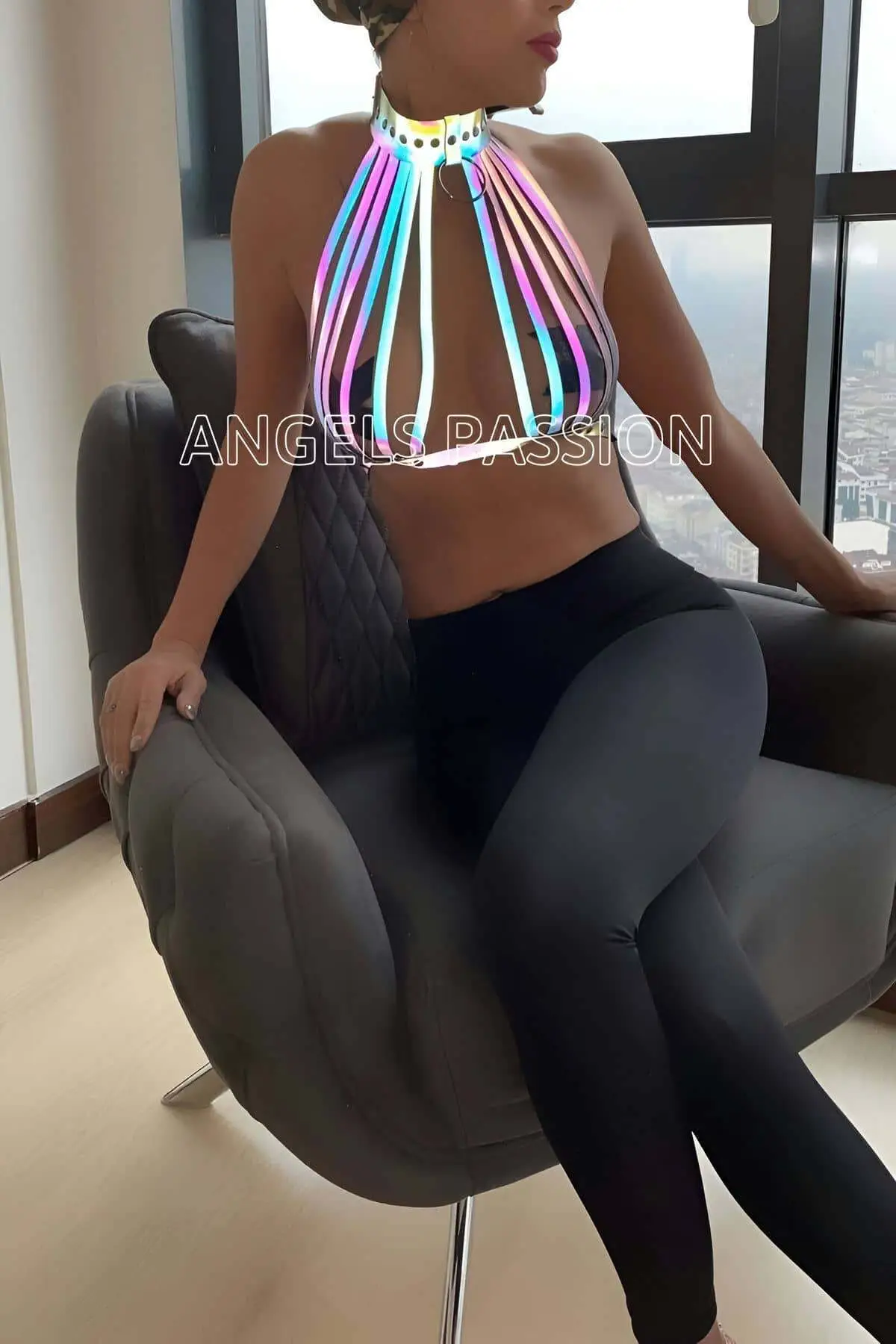Rainbow Reflective Sexy Harness Bustier – SH551