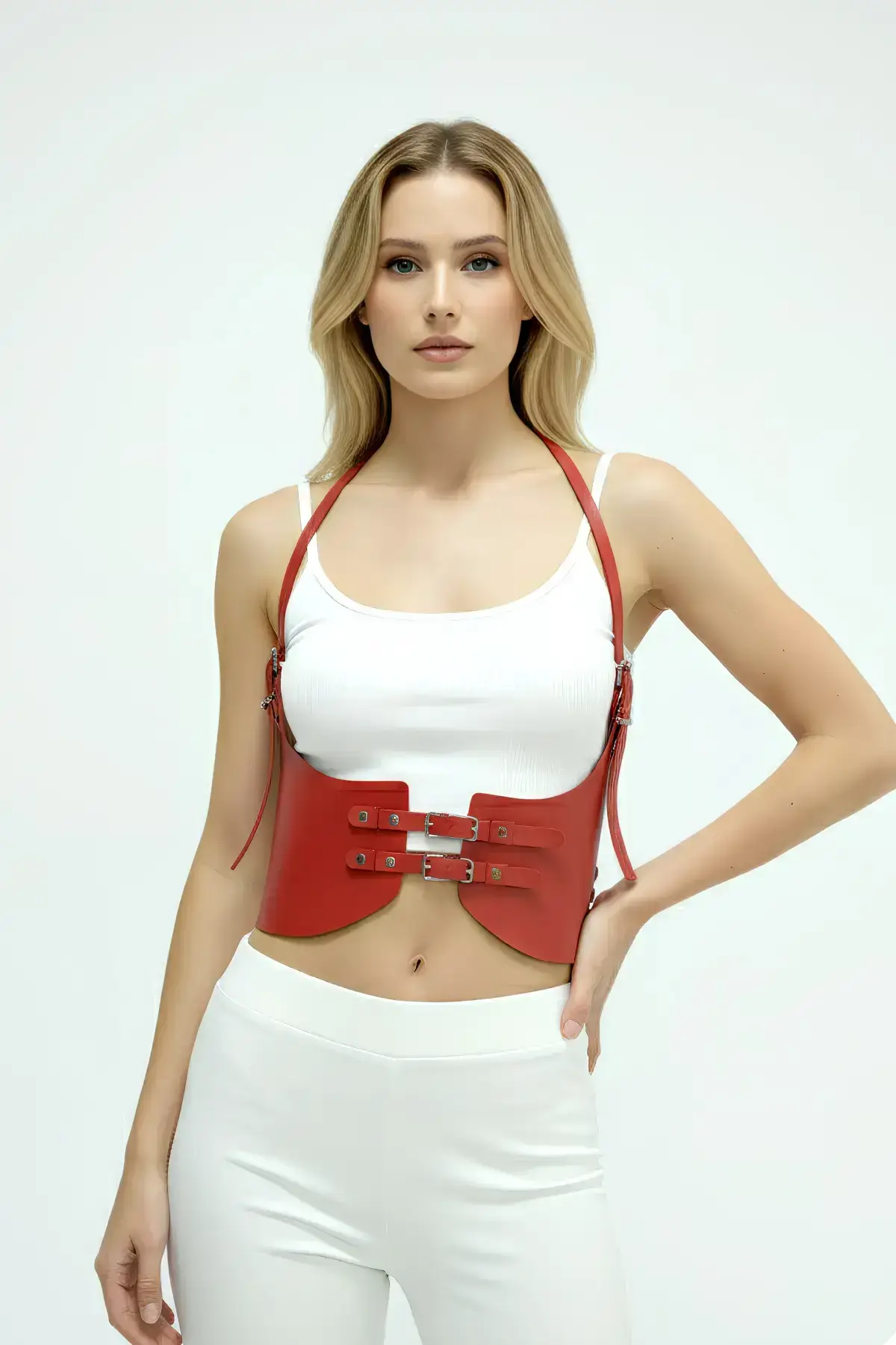 Pair this statement piece over an oversized shirt, a flowy dress, or with your favorite Leather Skirt for an instant gothic or punk edge. The solid construction and daring color make it a fantastic complement to more complex pieces like a Women’s Harness setup, adding a final touch of intensity and definition to your look. Embrace the power of red and make a bold fashion statement.