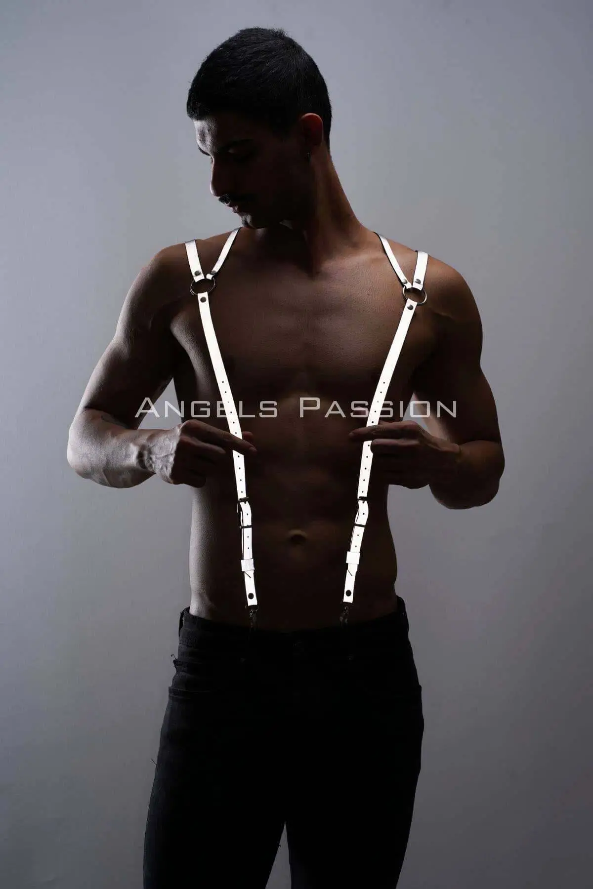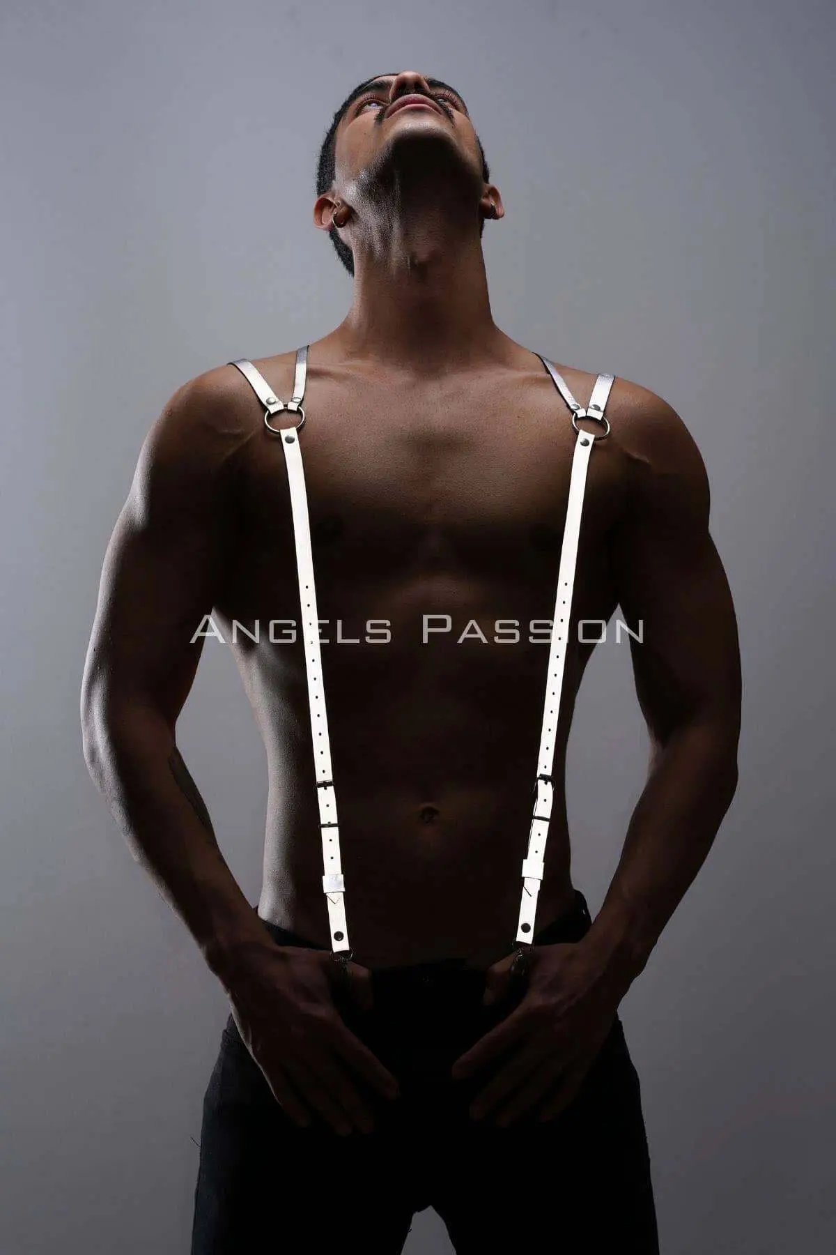 Crafted from high-grade, durable materials, these men’s trouser suspendersβ€”or shoulder beltsβ€”are engineered for both performance and piercing aesthetic impact. The reflective surface is seamlessly integrated into the premium faux leather strapping, ensuring maximum visibility under UV or flash lighting without compromising the garment’s refined, authoritative feel. Heavy-duty metal clasps and adjusters guarantee a secure, customized fit that molds flawlessly to your physique, whether worn over clothing or directly against the skin.