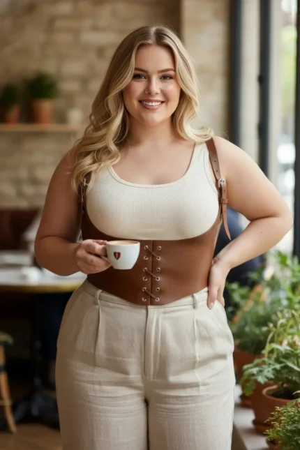 37,9 $Plus Size Women’s Leather Corset with Belt, Shoulder Straps and Tie-Up – SH1428