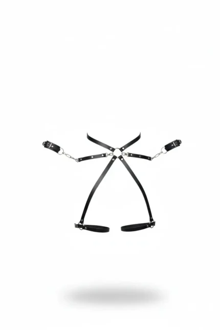Black Harness Set with Chain Detail and Cuffs – SH772