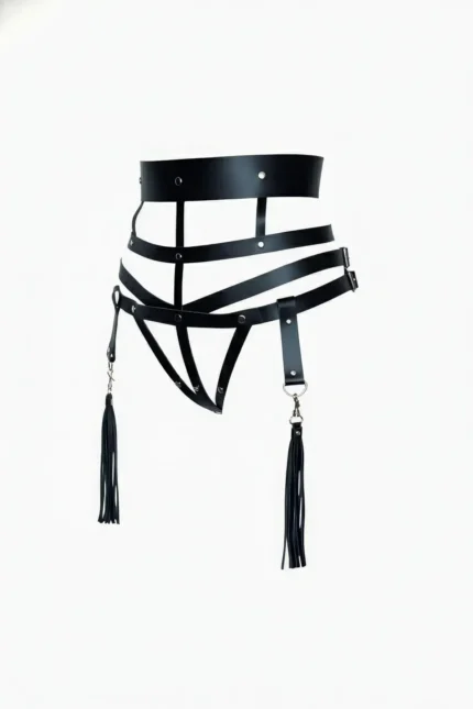 Black Women’s Belted Multi-Strap Leather Corset with Detail – SH397