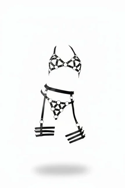 Black Harness Set with Metal Ring Detail and Garter Belts – SH530
