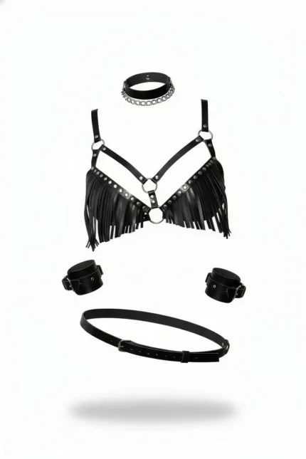 Black Harness Set with Tassel and Studded Ring Detail – SH896