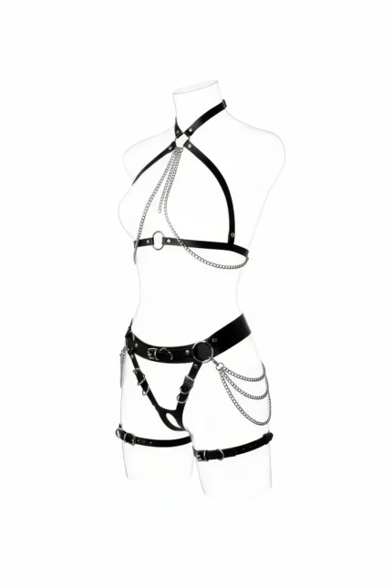 Black Harness Set with Buckle and Leg Detail Body Accessory – SH1084