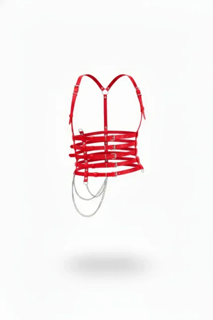 Red Women’s Belt with Chain Detail, Shoulder and Body Belt – SH215
