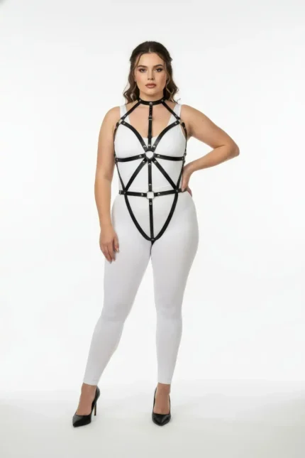 54,9 $Plus Size Black Women’s Harness Set Body-Hugging Leather with Ring Detail – SH243