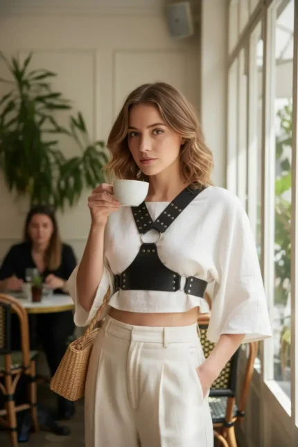 35,9 $Chain Detail Sexy Leather Harness Set – SH1224