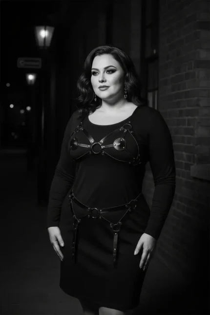 Plus Size Black Women’s Leather Garter Harness with Ring Detail Outfit Complementary – SH336