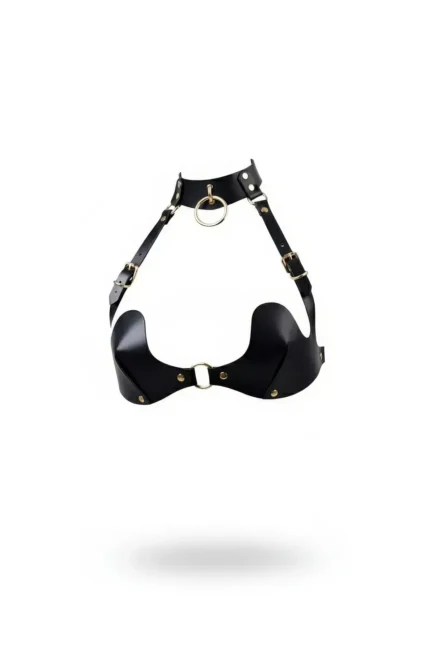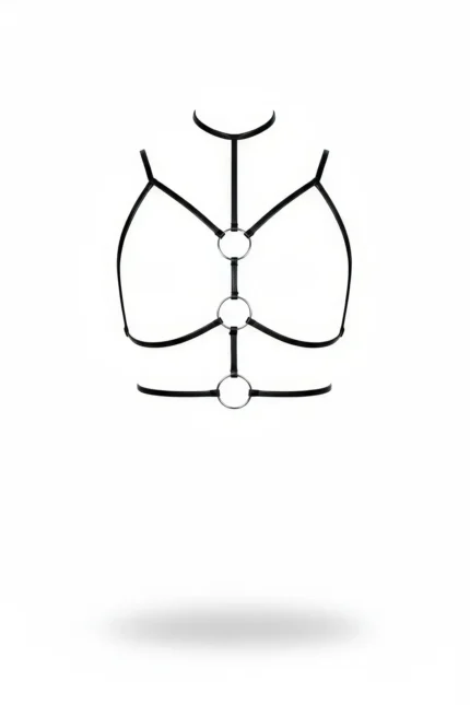 Black Chest Harness, Faux Leather, with Ring Detail and Neck Strap – SH184