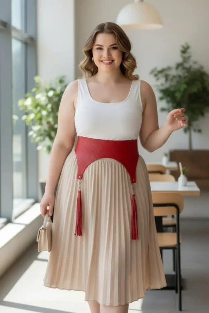 51,9 $Plus Size Red Women’s Leather Corset Design with Belt and Tassel Detail – SH755