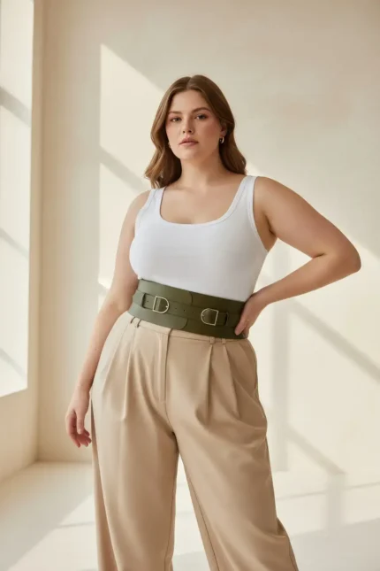 46,9 $Plus Size Khaki Women’s Wide Waist Belt Corset with Double Buckle Detail – SH875