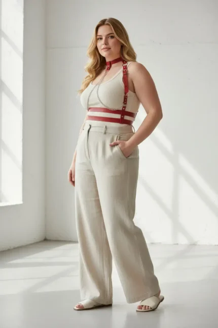 33,9 $Plus Size Red Women’s Leather Harness Body Accessory with Chain Detail – SH824